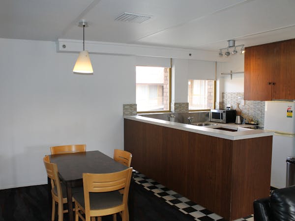 อพาร์ตเมนต์ปรับอากาศมีห้องครัวพร้อมอุปกรณ์ครบครัน ทีวี และห้องน้ำส่วนตัว